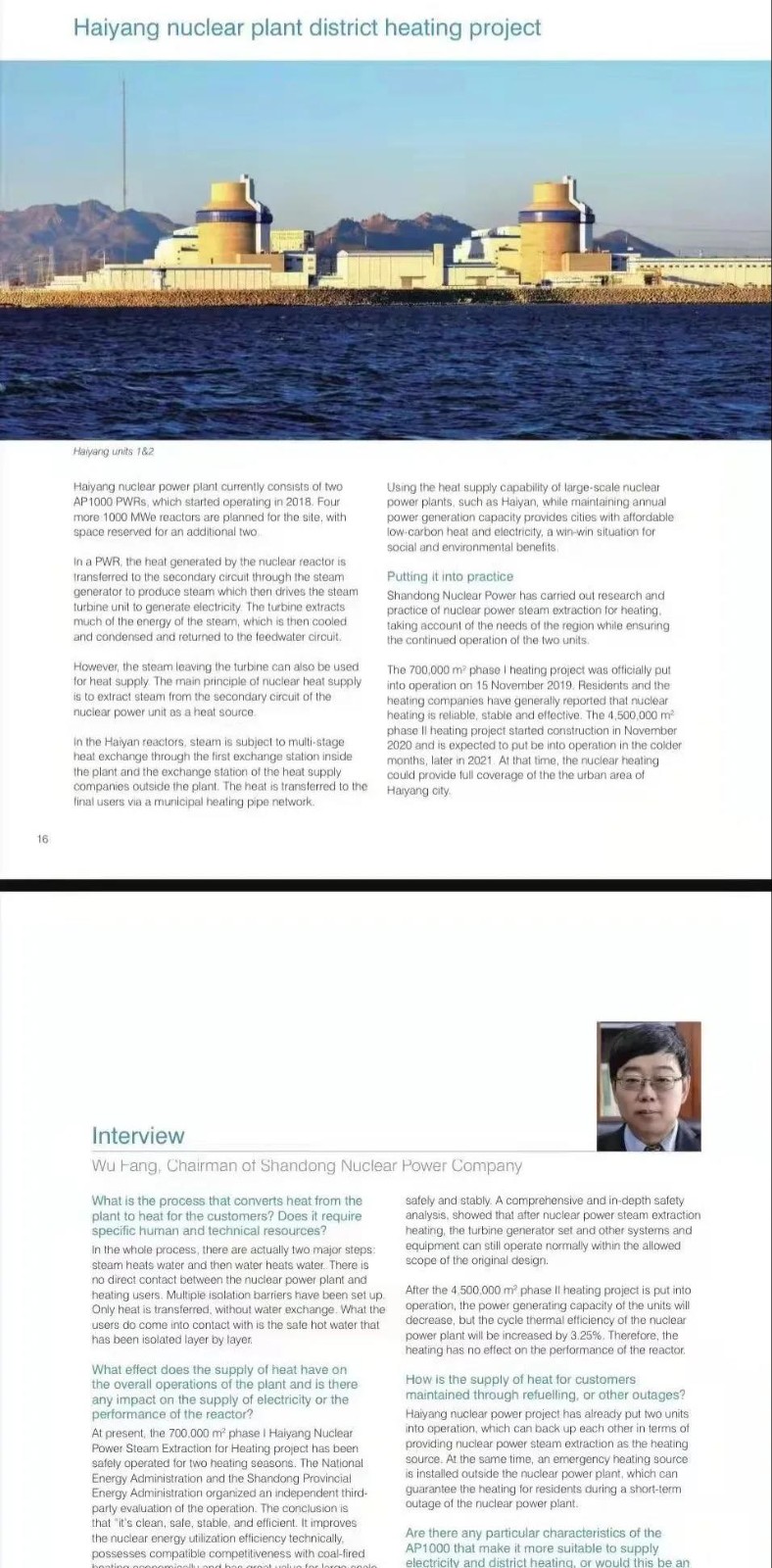 近日,2021年《世界核電廠運行實績報告》發布,國家電投“海陽核能供熱”案例作為中國唯一的案例入選,向全世界展示了中國核能綜合利用的創新成果和低碳發展的良好形象,充分展現了中國核電多元化發展的成就。