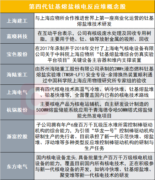 第四代釷基熔鹽核電反應堆概念股如下:
