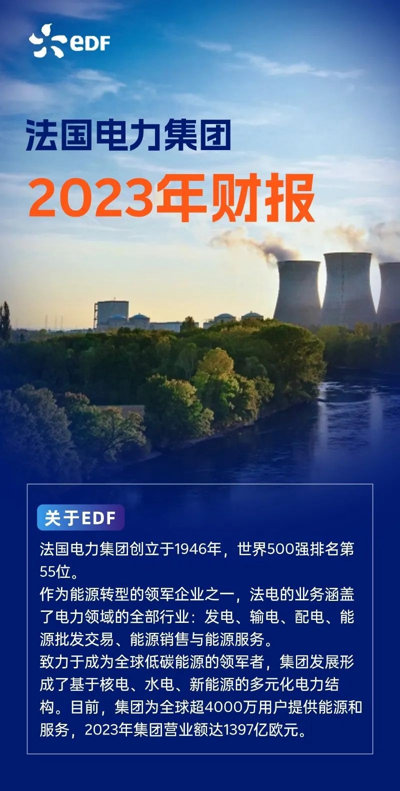2024年2月16日,法國電力集團發布了2023年報,集團業績持續向好,多項數據增長顯著。