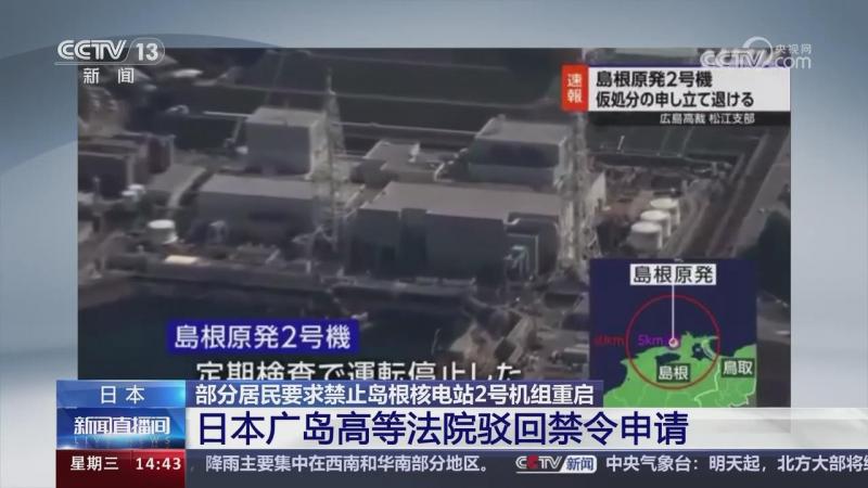 部分居民要求禁止島根核電站2號機組重啟 日本廣島高等法院駁回禁令申請