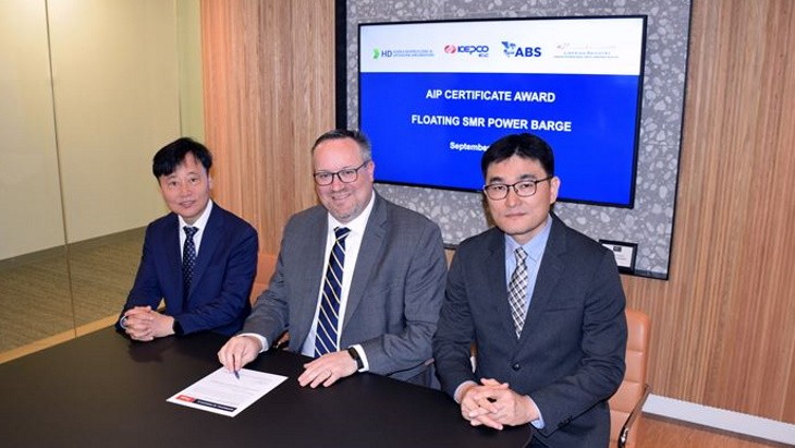 HD 韓國造船與海洋工程公司 (KSOE) 和 Kepco 工程建設公司 (Kepco E&C) 的浮動海上核電駁船新設計已獲得美國船級社 (ABS) 的原則批準 (AIP)。HD KSOE 的設計涉及一艘 240 MW SMR 動力船,配有四套 60 MW SMR。該船將是海上漂浮的SMR設施,SMR位于底部,頂部有一個平臺,可生產氫氣等無碳燃料。